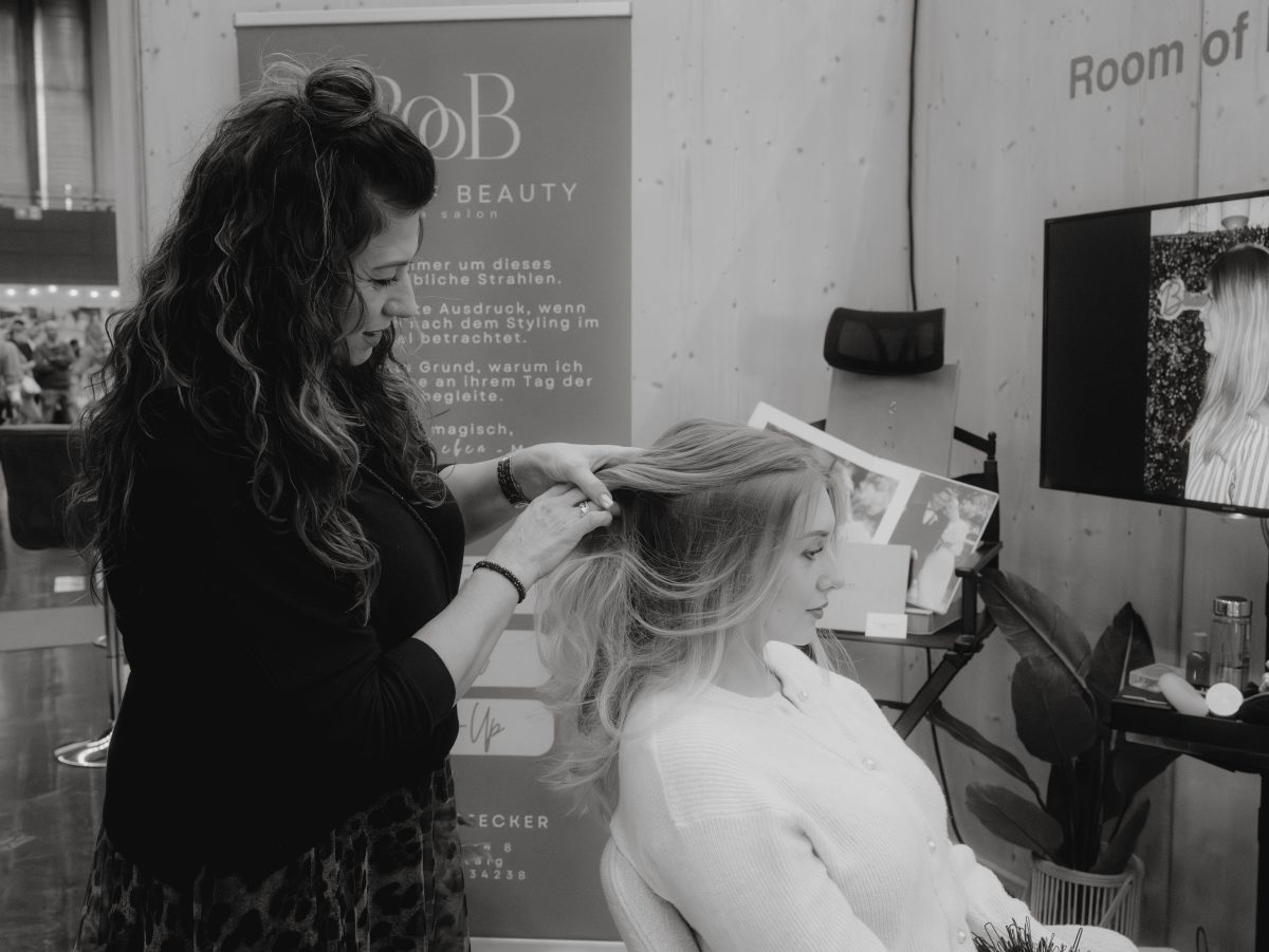 In dieser Galerie siehst du mich direkt beim Styling von Brautfrisuren auf der Hochzeitsmesse „Ewig Dein“ in Ravensburg. Vom ersten Handgriff bis zum fertigen Look – genau so entstehen die Frisuren für den Hochzeitstag.